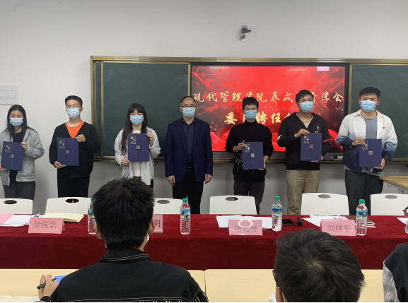 会议第二项议程是由现代管理学院院长谢远健为现代管理学院养成教育学会委员颁发聘书。