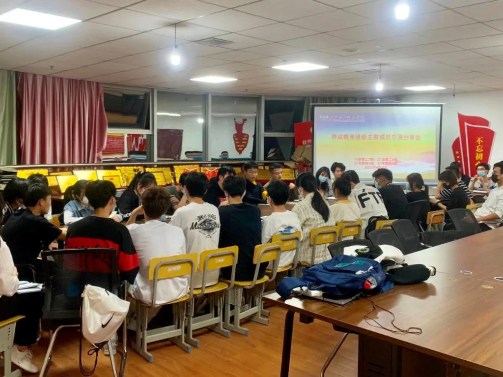 为展现软件与区块链学院养成教育风采,软件与区块链学院19本软件工程7班、21本软件工程4班、21专软件技术3班、21专软件技术4班养成教育班级负责人于2022年4月8日晚19时在综合楼305开展了养成教育班级主要成员交流分享大会。本次会议由软件与区块链学院19级、21级辅导员曾不亚老师主持。
