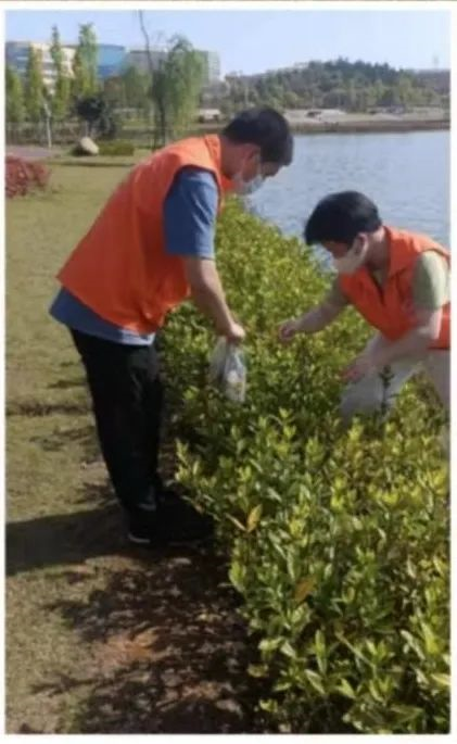 志愿者们2点10分在小广场准时集合,在做好防疫措施的情况下准备好了可循环利用的垃圾袋、麻布手套、小铲子、小夹子等工具。而为宣传绿色发展理念减少新垃圾袋的使用,志愿者也随身携带了自己的闲置垃圾袋。