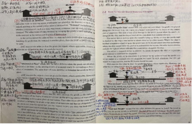 采用红蓝黑三种颜色的笔做记录,明确地将主要内容、次要内容、一般内容区分开,既方便查找又能突出重点,在复习查看的时候能够迅速找到需要重点复习的内容。