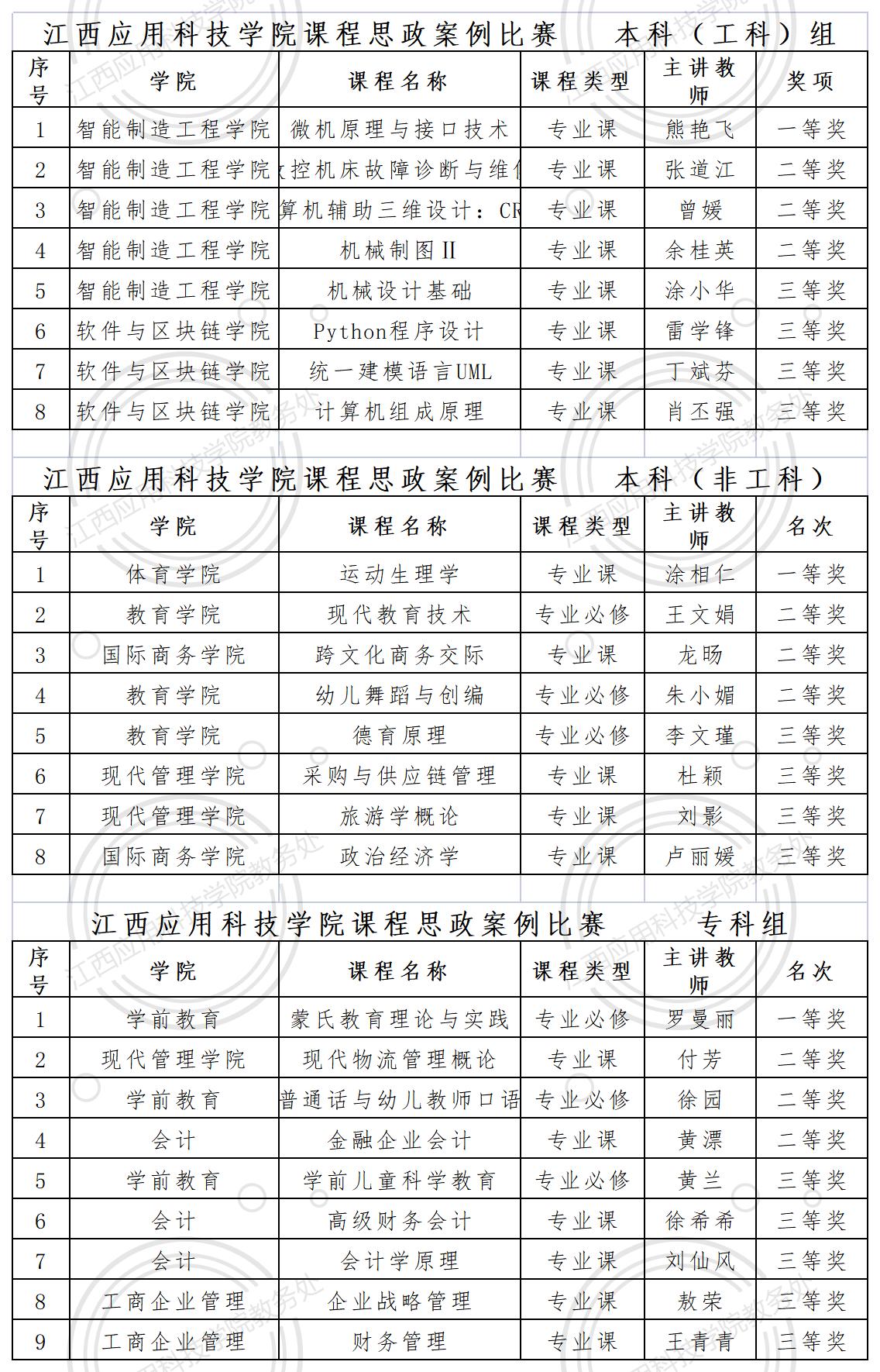 为贯彻落实教育部《高等学校课程思政建设指导纲要》等文件精神,进一步提升必赢官网教师课程思政教学能力,展示必赢官网课程思政建设在课程教学设计层面的阶段成果,教务处组织评选小组对各教学院部自主申报的88项课程思政案例进行评选。评选分为本科-非工科组、本科-工科组、专科组三个组别,经过评选小组综合评比,各小组共评出一等奖3项,二等奖9项,三等奖13项(后附获奖名单)。