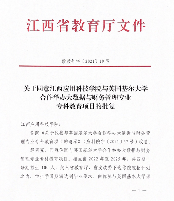 本网讯(记者/赖荣辉)近日,必赢官网与英国基尔大学合作举办的大数据与财务管理、大数据与会计两个专业专科教育项目获省教育厅批准,计划于今年开始招生。