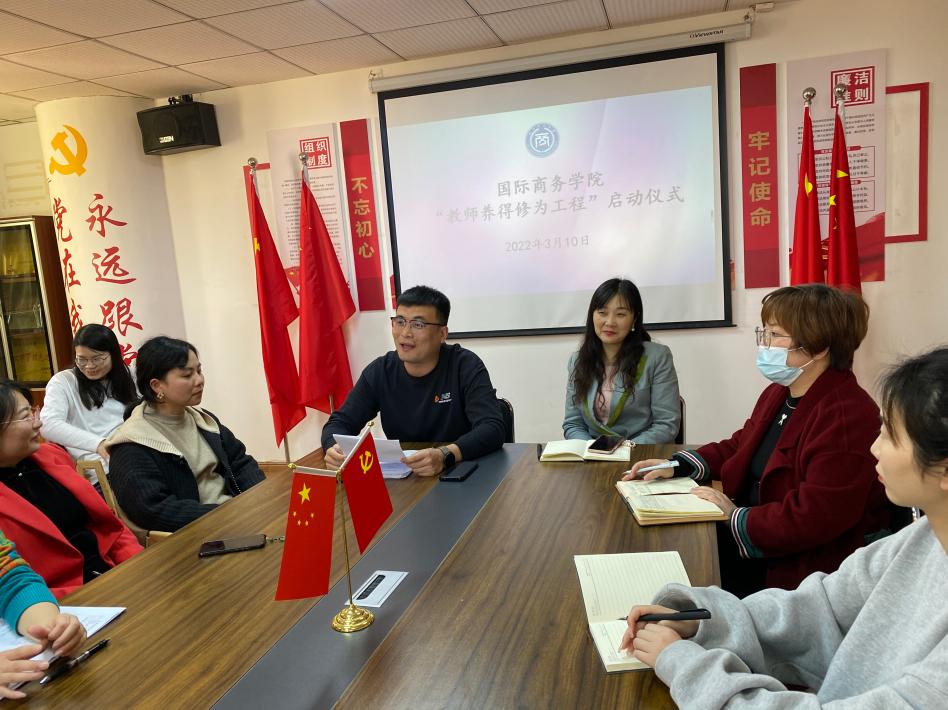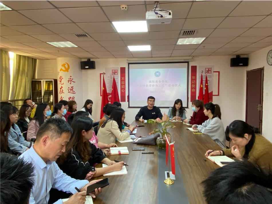 根据72886必赢网站教师养德修为工程实施方案(试行)的通知:为更好的落实学校教师养德修为工程,通过实施教师养德修为工程,建设师德高尚、业务精湛、忠诚于教育事业的教师队伍,满足学校发展和高素质应用型人才培养的需要。国际商务学院于2020年3月10日,在综合大楼404召开“教师养德修为工程”启动仪式。国际商务学院院长王慧、党总支副书记徐青、副院长罗小丽出席会议。全体教师参加此次会议,会议由徐青主持。