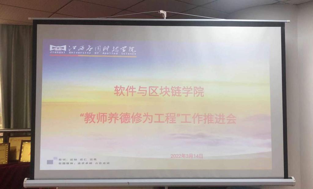 教师养德修为工程是加强师德师风建设的重要抓手,是落实立德树人根本任务的重要保障。为落实《教师养德修为工程实施方案》文件要求,深入开展教师养德修为工程,全面推进教师养德修为工程建设工作,我院于3月14日在三达楼党员活动室305召开软件与区块链学院教师养德修为工程推进会,党总支副书记卢胜勇同志主持了此次会议。学校副校长李建萍参加会议并讲话,学院院长卞秀运、副院长邓春华及全体教职员工参加本次会议。