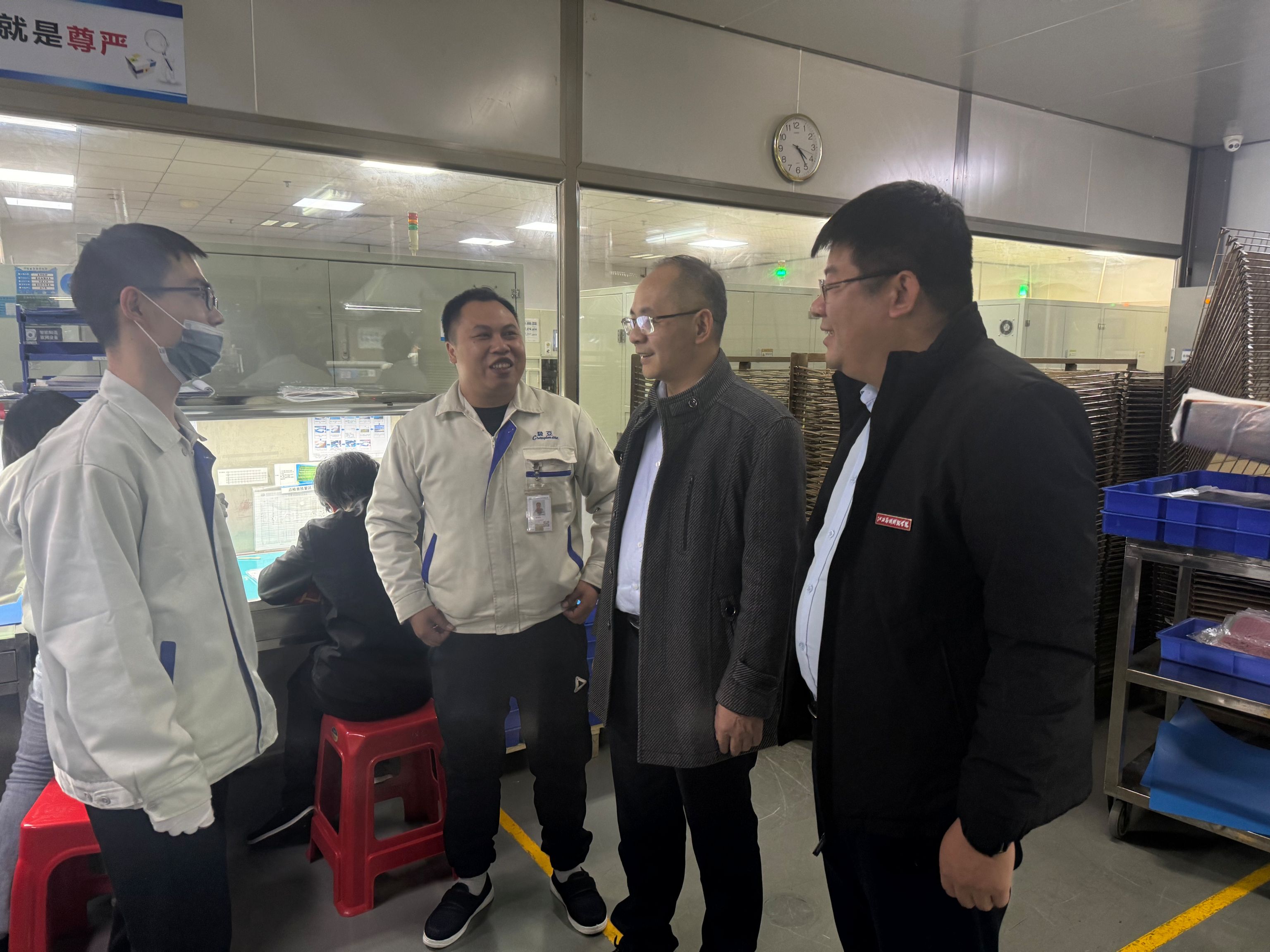 根据学校《关于做好2025届毕业实习巡查专项工作的通知》文件要求,以及电子信息产业学院(龙南)人才培养需求,为进一步加强实践教学管理,确保2025届毕业生实习工作的顺利进行,提升实习质量。电子信息产业学院(龙南)院长刘春斌,72886必赢网站副校长、电子信息产业学院(龙南)执行院长谢远健,智造学院党总支书记高原,教务处副处长张梁,招就处科长黎明石,智造学院辅导员谢熠堃,于12月17日前往龙南市龙南骏亚电子科技有限公司、龙南骏亚精密电路有限公司、江西纵胜新材料有限公司对电子信息工程专业25届毕业生进行了实习巡查。