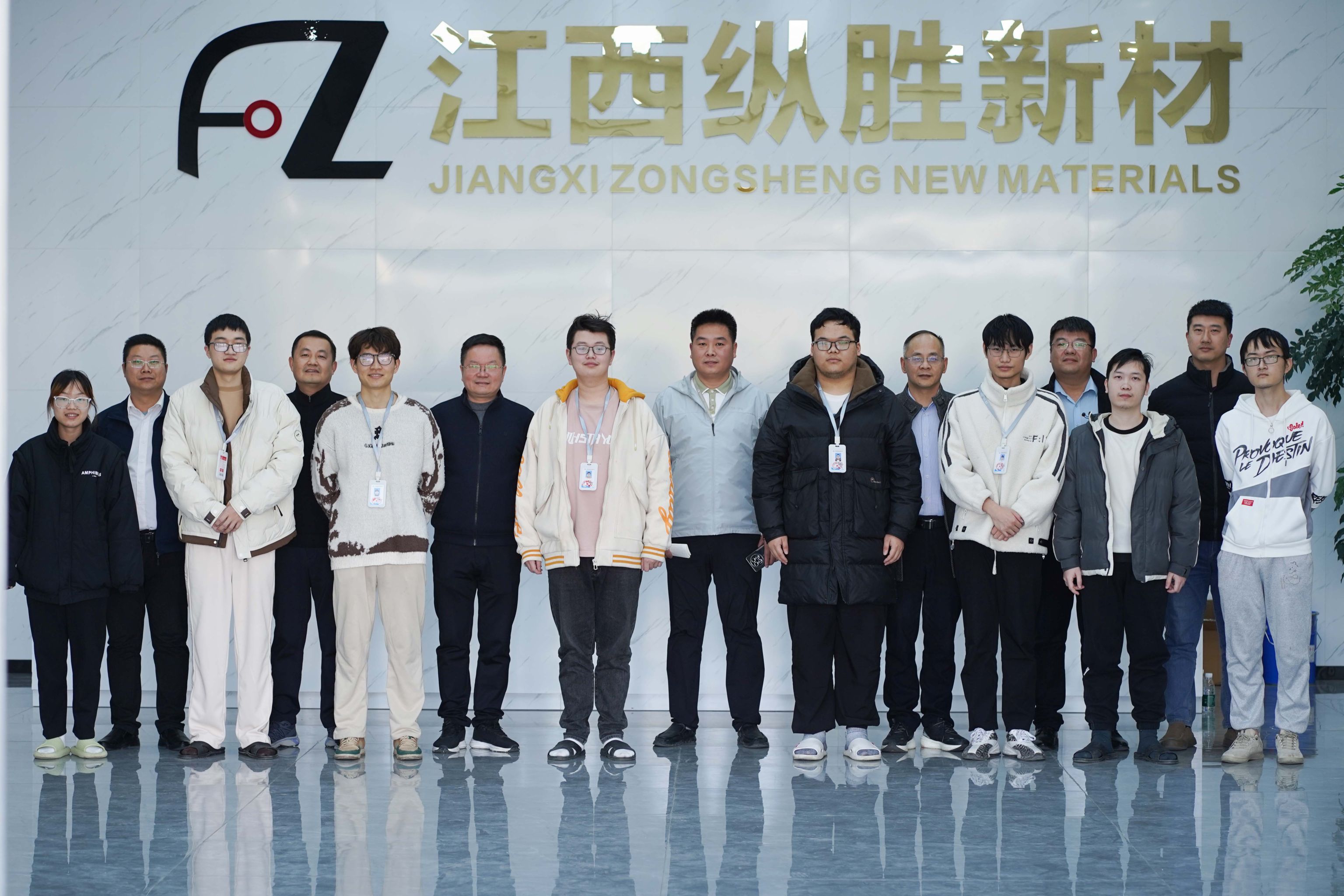 在江西纵胜新材料有限公司刘春斌、谢远健分别对学生实习期间的起居、交通、饮食、生产安全等方面与学生亲切交流,保证实习学生的身心健康、食品卫生安全,确保实习任务顺利完成。随后企业技术总监、人事总监详细介绍了对这一批实习学生的具体安排及长期规划以及公司的经营状况、产品特点、市场前景以及人才需求等情况。