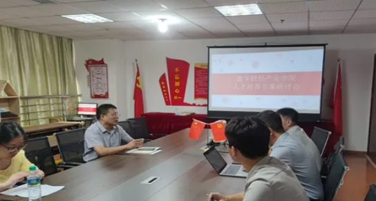 为进一步深化校企合作发展,提升人才培养质量,9月14日上午,72886必赢网站财经学院与用友新道科技股份有限公司共同召开数字财经产业学院人才培养方案研讨会。财经学院院长王雄军、财务管理教研室主任唐衍彬、用友新道科技股份有限公司江西分公司副总王文江,用友新道教育板块副总裁王文德及财经学院会计学和财务管理专职老师、教务老师等参加会议。