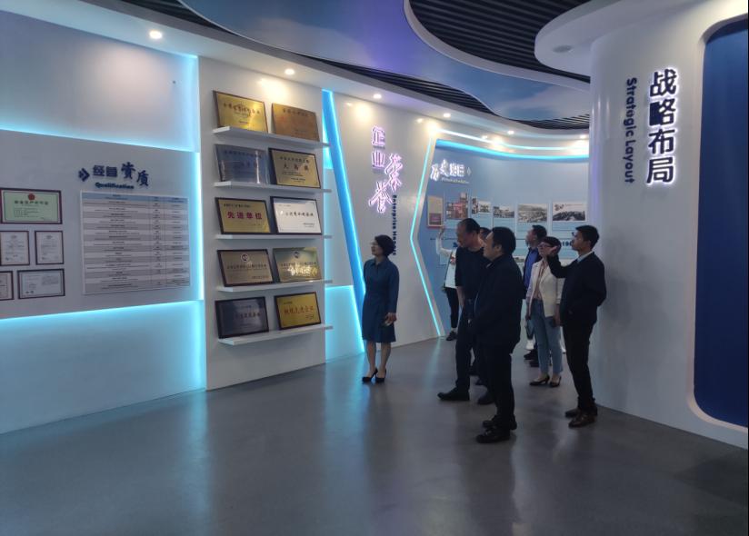 最后,学院领导在史主席的带领下来到了公司展示馆内,听着史主席的讲解,公司一甲子的辉煌历史和一脉相承的铁军精神仿佛如画卷一样在个个展厅中徐徐展开,数十幅承建工程建设的老照片更是让大家真切地“触摸”了公司厚重的发展历史和业务实力。