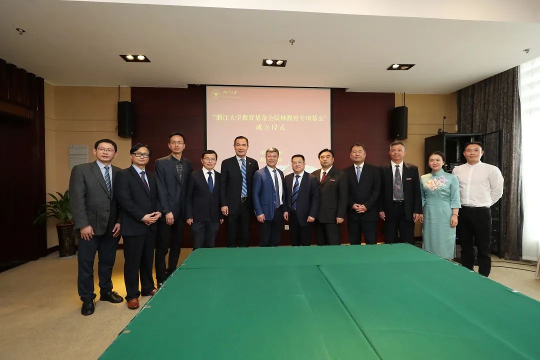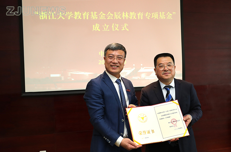 成立仪式上,邬小撑向黄玉林颁发荣誉证书和铭牌,浙江大学发展联络办公室主任、教育基金会秘书长沈黎勇与黄玉林签署基金成立有关协议。