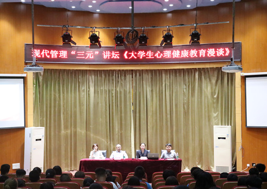 2019年9月26日晚上我院在浴星湖大讲堂开展了三元讲坛系列主题讲座第五讲,本次主题讲座邀请了校党委委员,校长助理党委综合办主任唐丽莉副教授,授课对象是现代管理学院全体学生。本次大会由现代管理学院院长谢远健主持。