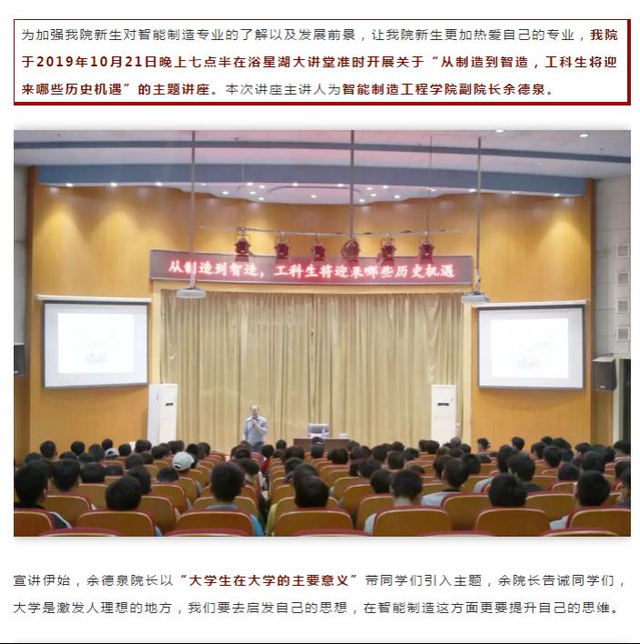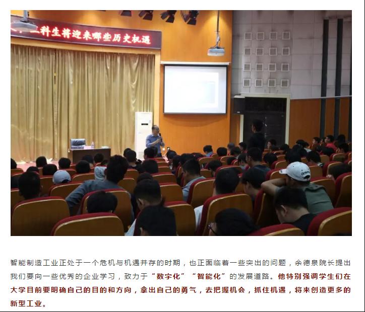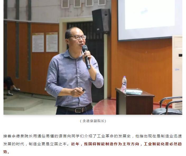 本次讲座让同学们对智能制造工业的发展有了更加深刻的了解,为同学们指明了方向,余德泉院长希望同学们能够努力学习,夯实自身科研本领,用胸怀世界的视野、坚韧踏实的脚步创造未来,将来为建设智造强国做出白己的贡献。