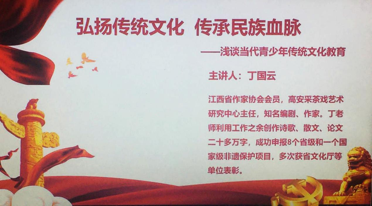 主讲人为江西省作家协会会员,高安采茶戏艺术研究中心主任,知名编剧、作家丁国云。