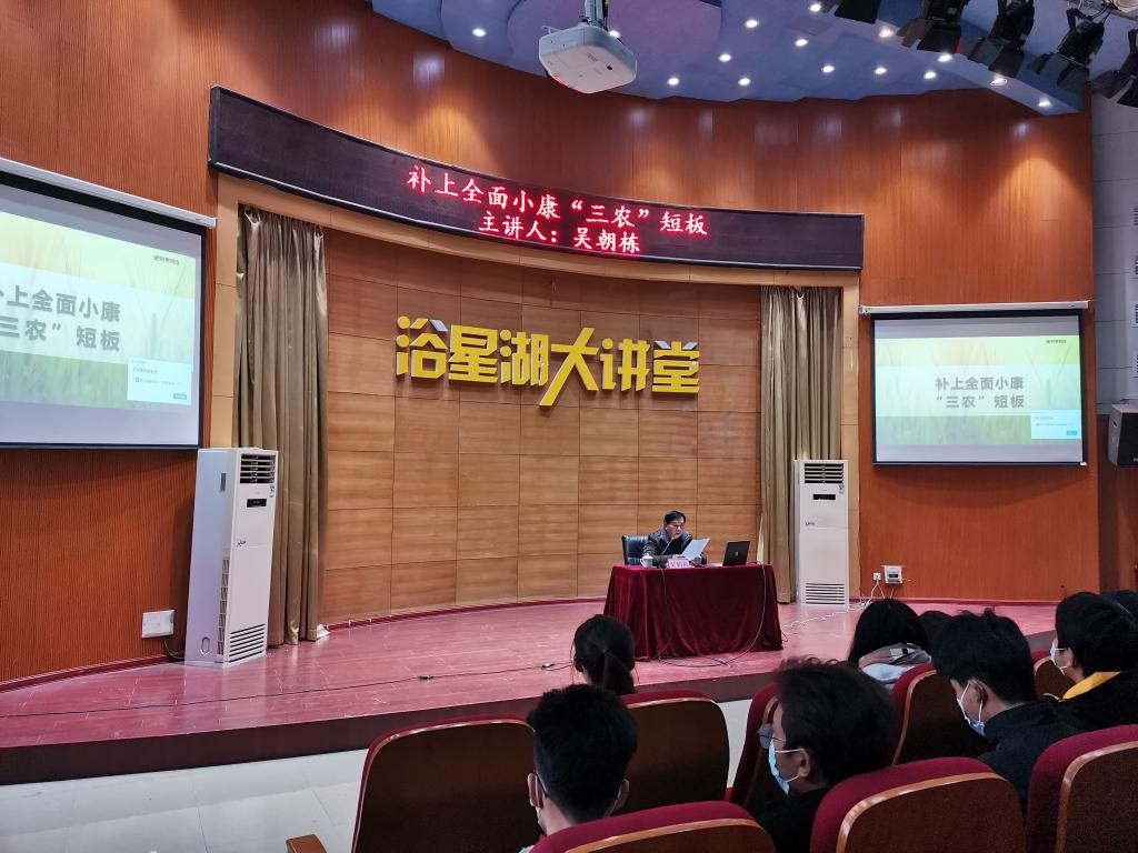12月9日,副校长吴朝栋在学校浴星湖大讲堂授“补上全面小康‘三农’短板”专题思政课。