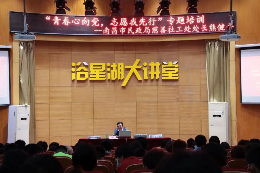 为了进一步理解“志愿性、公益性、无偿性”的志愿者三要素,4月1日,由南昌市民政局慈善社公处处长熊健平主讲的高校联合会新生骨干志愿者“青春心向党,志愿我先行”专题培训于浴星湖大讲堂举行,目的是切实提高志愿者的素质,增强志愿者服务本领,推进志愿服务常态化、特色化,建立一支团结、协作的志愿服务队伍。