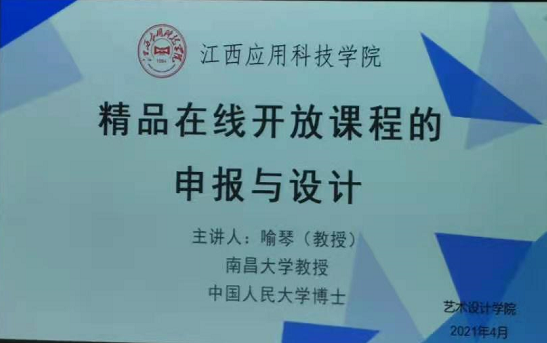 2021年4月7日下午,艺术设计学院在综合楼6楼会议室开展了“意在笔先”精品在线开放课程(一流本科课程)的申报与设计讲座,讲座由南昌大学喻琴教授(中国人民大学博士)主讲,学院李福全副院长及全体专职教师出席了讲座。