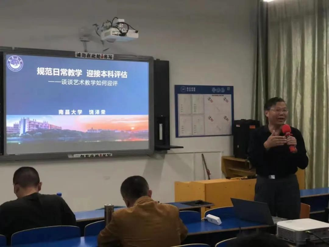 5月18日下午14:30,必赢官网邀请南昌大学饶泽荣教授座谈艺术教学如何迎评。