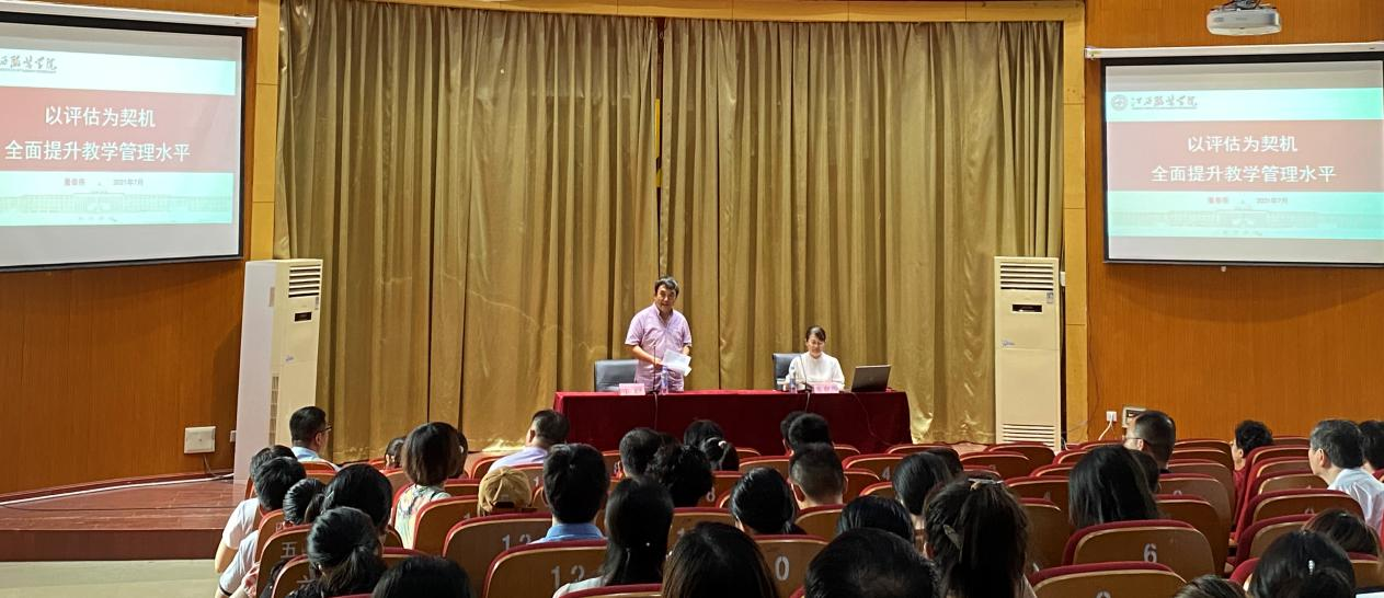 为全面贯彻立德树人根本任务,更好服务于本科教学合格评估工作,深化教育教学改革与管理,提升管理水平,7月21日下午,必赢官网在浴星湖大讲堂邀请了江西服装学院教务处处长董春燕来校为全体教学管理人员及教研室主任作题为“以评估为契机全面提升教学管理水平”的专题培训讲座。二级学院院长、副院长、教务科科长、教研室主任,评估办、实验实训中心、质量建设测评中心、教务处全体成员等120余人参加。讲座由必赢官网陈恳副校长主持。