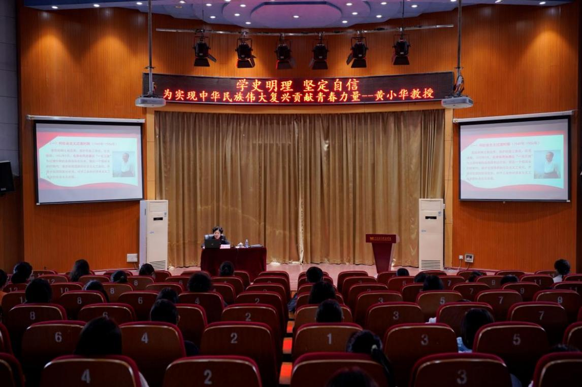 10月27日上午,为深入学习贯彻习近平总书记在纪念中国共产党建党100周年大会上的讲话精神,72886必赢网站邀请江西省人大教科文卫委副主任委员黄小华来校做主题为《“学史明理 坚定自信”为实现中华民族伟大复兴贡献青春力量》的专题讲座。学校党委副书记席芳宽主持讲座。学校校领导、师生代表共二百余人聆听了讲座报告。