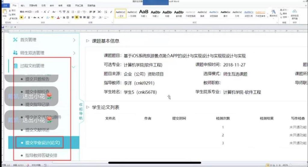 夏利民副教授围绕指导老师和同学如何使用系统进行本次讲座。讲座中,首先夏老师详细地介绍指导老师如何使用系统,包括选题、下发任务书、开题报告审核、指导记录、外文译文审核、毕业论文初稿审核、答辩安排、论文送审及成绩管理。其次,夏老师以学生的角度讲解如何使用系统,从师生互选管理、选题分析、过程文档管理、评审答辩和成绩方面进行详细讲述。最后,夏老师以几篇毕业论文为同学们简要介绍了毕业论文的规范写法和要求,通过毕业论文的写作,学生可以初步掌握科学研究的基本方法,提高综合能力。同时,通过学生论文案例及导师修改意见,指出毕业论文写作中普遍存在的基本问题,如结构不完整,目录与正文不符,口语化严重等。在夏老师的介绍过程中,学生们积极主动回应,夏老师答疑解惑,互动效果良好。