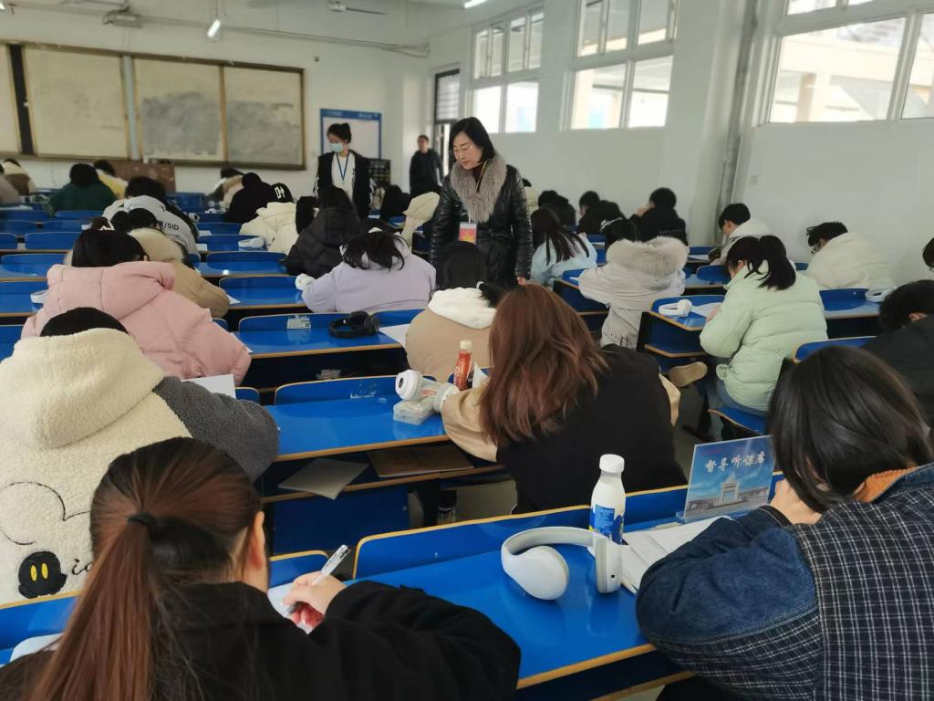 2023年2月16日下午,副校长胥懋云到三达楼期末考试考场进行巡视,现场指导期末考试组织管理及考风考纪工作。教务处常务副处长蒋德勇、副处长魏雅姝,公共教学部主任魏斯民、副主任罗小丽等陪同巡考。