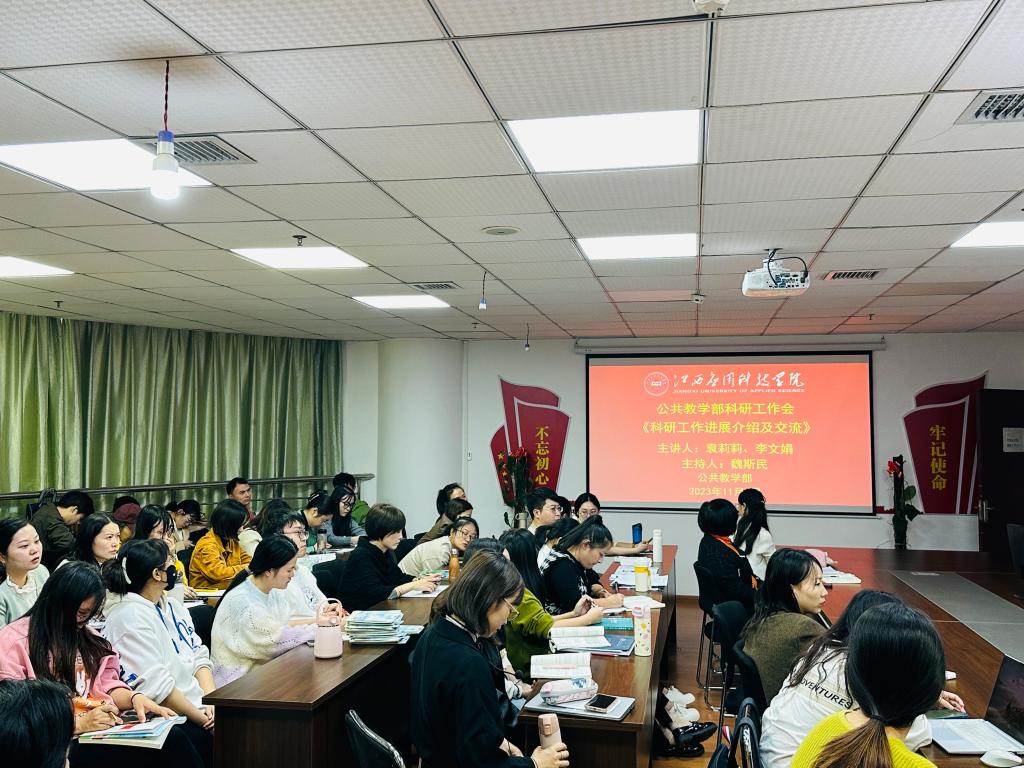 11月7日公共教学部在综合楼305室召开科研工作进展介绍及交流会议,会议由教学部主任魏斯民主持,李文娟老师和袁莉莉老师就自己的科研工作进行分享及交流,教学部全体人员参加会议。