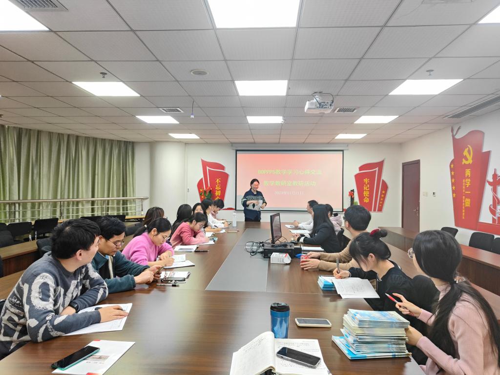 为进一步深化和巩固学校举办的“BOPPPS教学技能工作坊”培训的效果,提升教师教学水平,11月21日数学教研室在综合大楼305会议室开展BOPPPS教学学习心得交流会,会议由教研室主任杨淑芬主持,数学教研室全体教师参加了交流会。