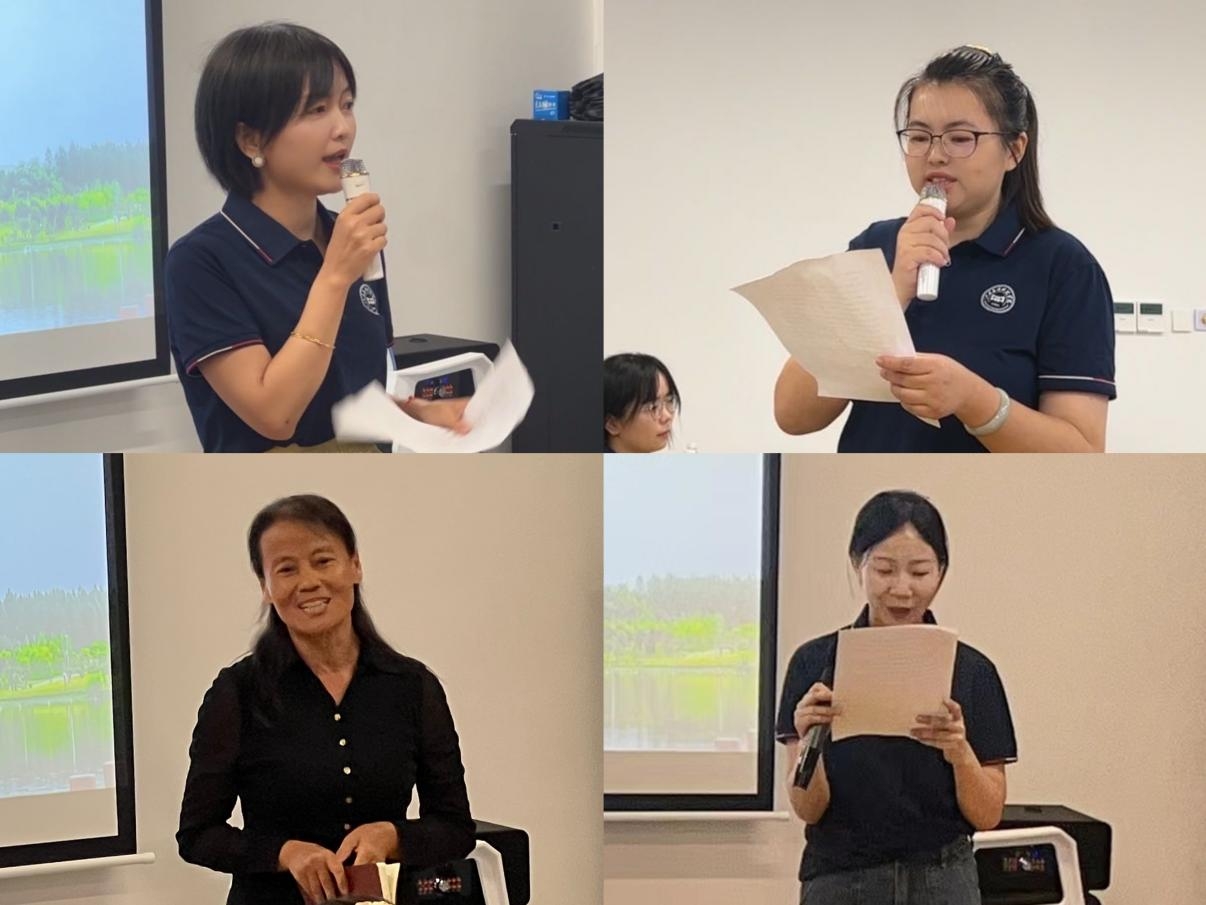 (左上为专职教师代表刘锦莲;右上为专职教师代表万菲;左下为新进教师代表李静;右下为2024年教学管理先进个人申泽丹)