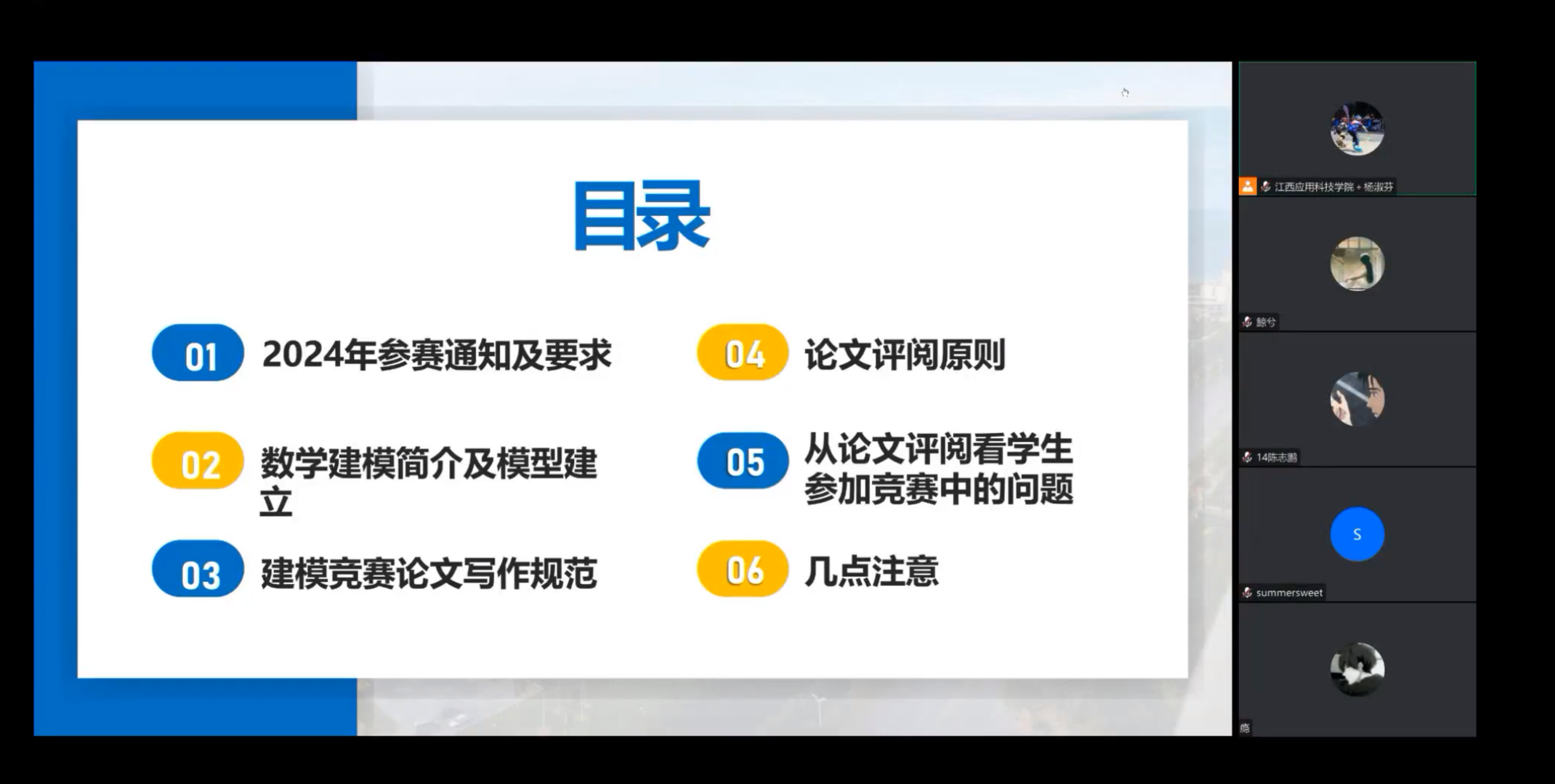 本次比赛公共教学部数学教研室于今年5月份开始宣传组织报名工作,经过3个多月的培训与选拔,最后选拔24支参赛队伍。备赛期间,在学校相关职能部门和公共教学部的大力支持下,数学建模教练组团队的全体教师通过线上线下混合方式为参赛学生提供了细致的培训和指导,深入分析了历年赛题,指导学生在数学模型、数据分析与处理、文献查阅、论文撰写与软件编程等方面开展深入学习,帮助学生们做好充分准备,激发了他们的参赛热情。