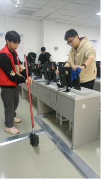 全体学生以小组为单位,做好分工,相互配合,劳动过程中井然有序,同学们干劲十足、热情高涨,团结协作,认真地完成了实验室地面和仪器设备的清理工作。