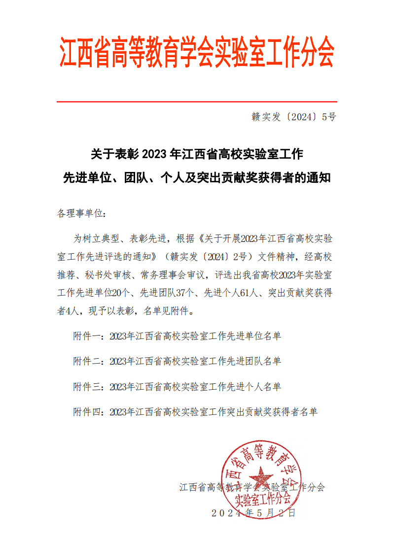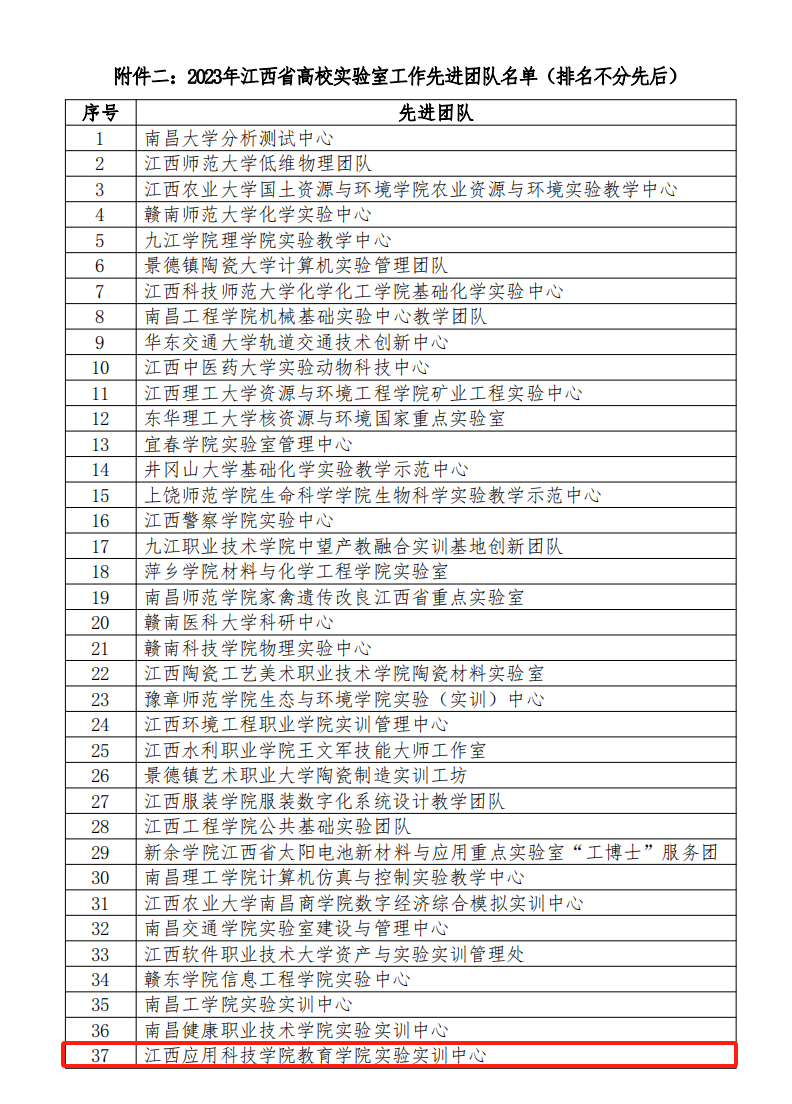 近日,江西省高等教育学会实验室工作分会印发《关于开展2023年江西省高校实验室工作先进评选的通知》,必赢官网获评“2023年江西省高校实验室工作先进单位”、教育学院实验实训中心获评“2023年江西省高校实验室工作先进团队”、刘宇中获评“2023年江西省高校实验室工作先进个人”。必赢官网为唯一获得先进单位的民办高校。