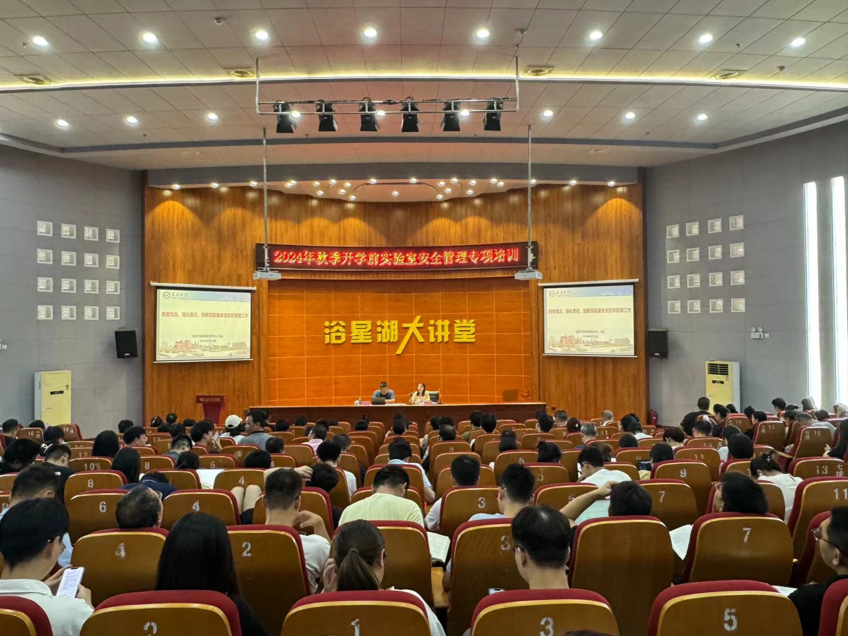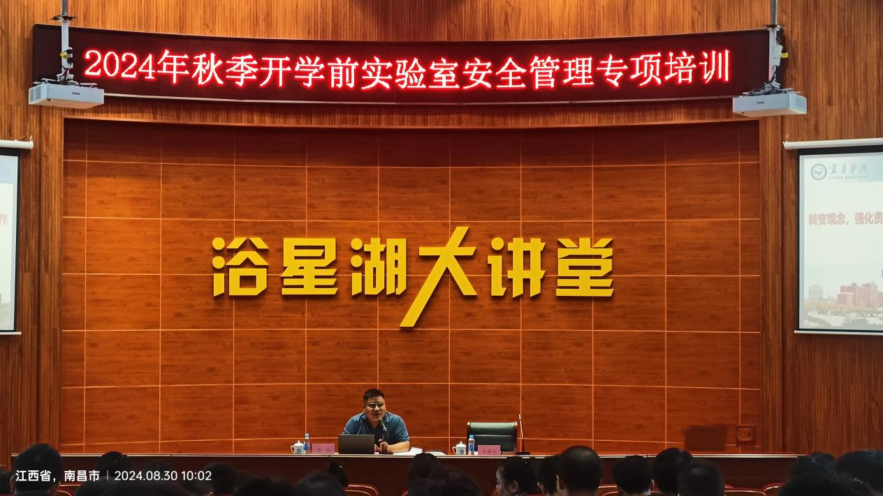 新学期伊始,为全面贯彻落实习近平总书记关于安全生产重要论述和指示批示精神,落实教育部关于2024年度高等学校实验室安全工作的指示,进一步强化师生安全意识,提升师生安全技能,保障实验室安全和师生生命安全,2024年8月30日,产教融合与实验实训中心举办了“2024 年秋季开学前实验室安全管理专项培训”,学校副校长谢远健出席会议,培训会由产教融合与实验实训中心主任刘宇中、副主任徐燕兰共同主持。