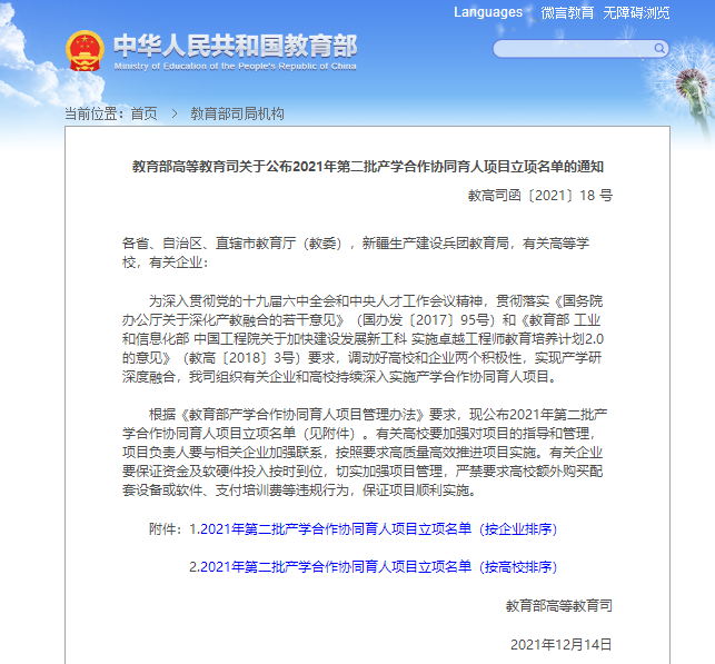 近日,教育部发布《教育部高等教育司关于公布2021年第二批产学合作协同育人项目立项名单的通知》,华为鲲鹏产业学院有2个项目获批立项分别是《基于O2O的“程序设计基础”课程改革研究》、《应用型本科院校人工智能师资能力提升路径研究》这2个项目获批立项,获批项目涵盖师资培训 、创新创业教育改革、实践条件和教学内容等方面。