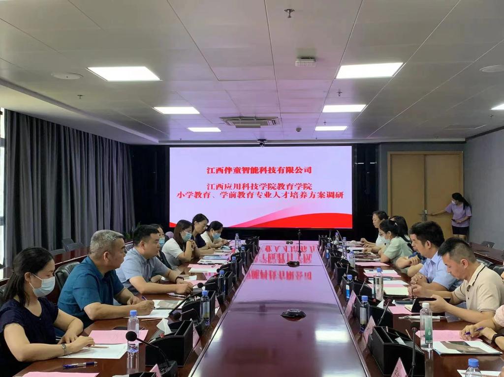 为进一步深化教育教学改革,优化专业人才培养方案,提高人才培养质量,落实专业培养目标,优化教育学院本科专业人才培养方案。7月27日,教育学院院长郑昌保、办公室主任祝婷、教务科长邹振根、学工科长张伟健、小学教育专业教研室主任路萍、学前教育专业教研室主任卓筱芸及学院骨干教师代表一行到江西伴童智能科技有限公司就小学教育、学前教育专业2022级人才培养方案的规划和课程的设置、实习就业的环境、校企合作的模式等内容进行探讨。