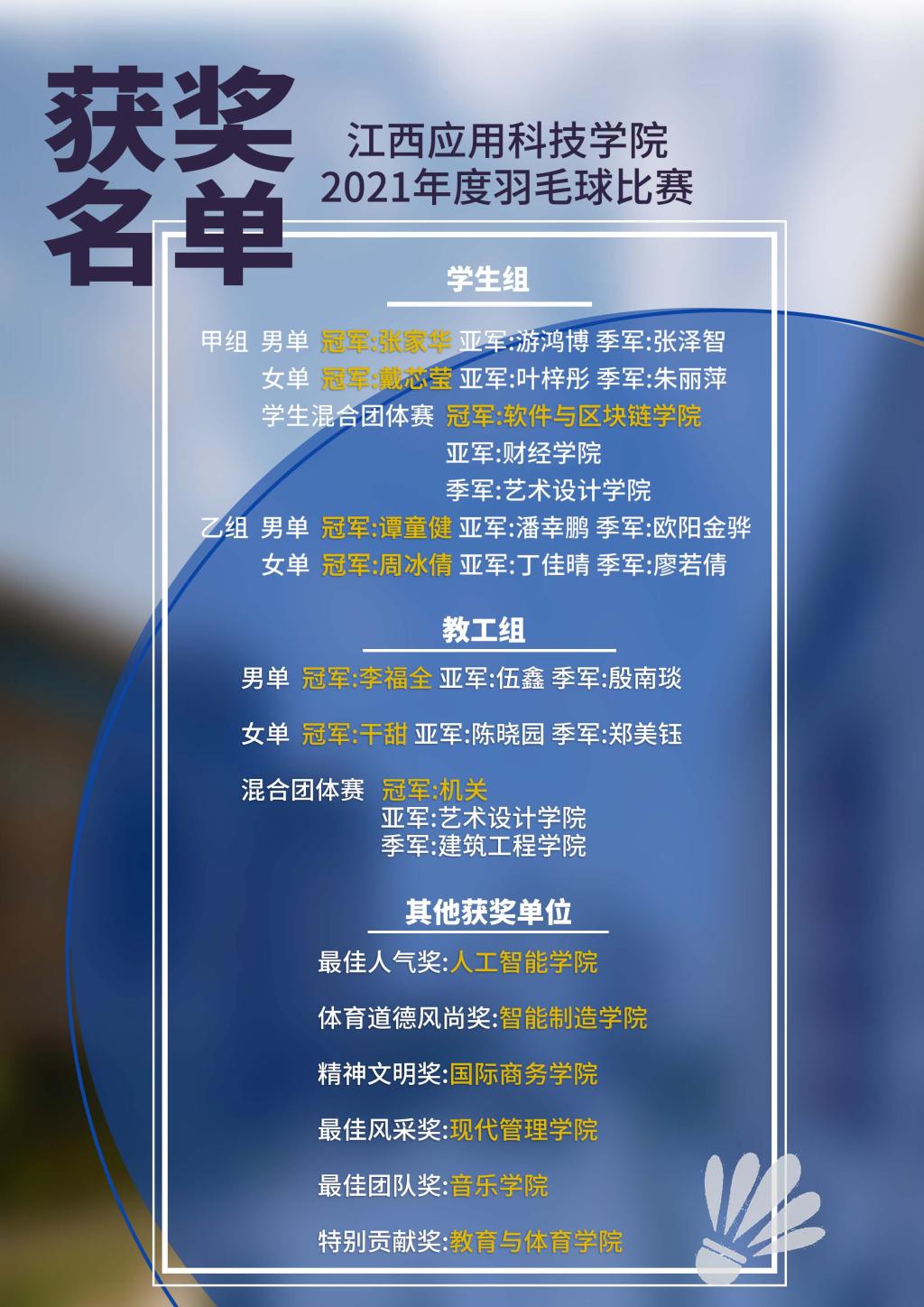本次羽毛球比赛旨在提高全校广大羽毛球爱好者竞技水平的同时,也丰富了应科教职工和同学们“健康生活快乐工作”的业余文化生活,活动营造出“我工作我运动我健康我快乐”的校园文化氛围,参赛选手们将积极进取、不懈拼搏的竞技精神发挥得淋漓尽致。