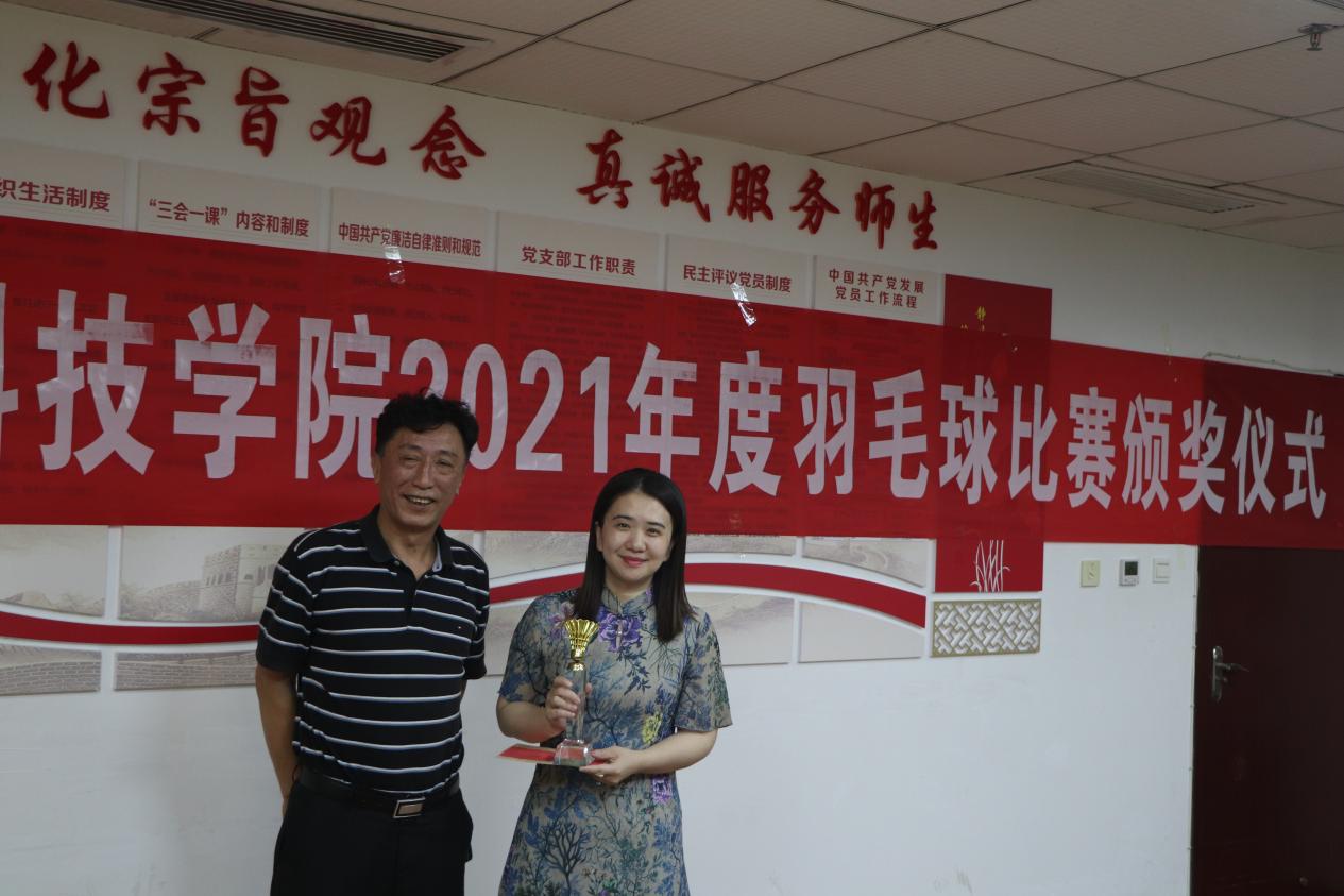 本网讯(记者/熊晨皓 摄影/罗子真)由校体委、校工会主办的2021年师生羽毛球赛圆满结束,6月11日上午,学校在综合楼六楼会议室举行颁奖仪式。