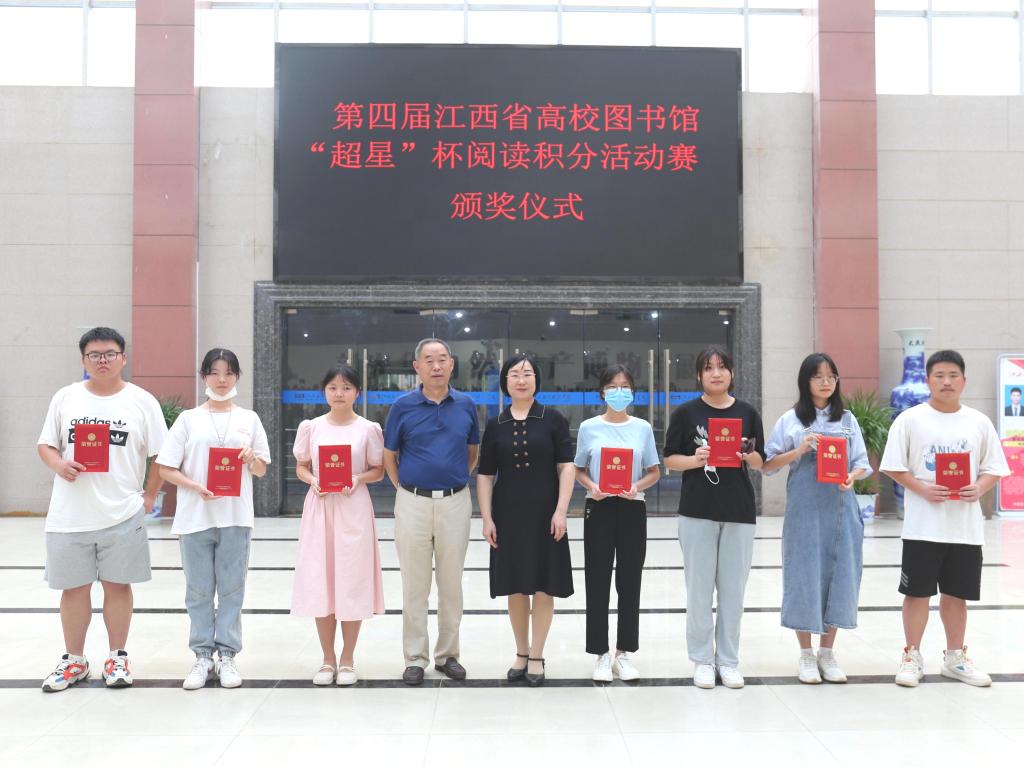 为深入推进全民阅读,丰富在校师生疫情期间的校园文化生活。图书馆在第27个“世界读书日”期间陆续开展了第二届江西省高校图书馆“知网研学”杯积分挑战赛和第四届江西省高校图书馆超星杯阅读积分活动。6月14日下午,图书馆在一楼大厅举行了2022年读书月活动颁奖仪式。副校长胥懋云出席仪式并为获奖单位及个人颁奖。部分师生代表参加仪式。