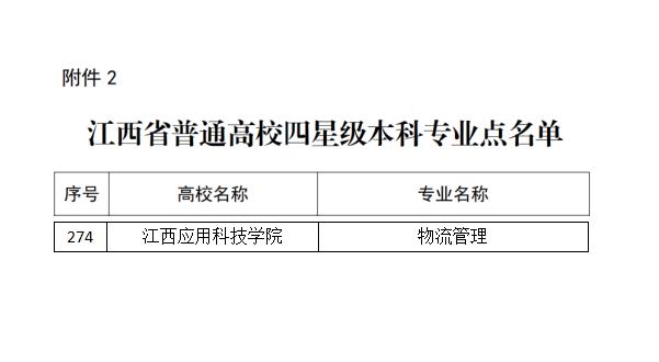 近日,根据省教育厅发布《关于江西省普通高等学校本科星级专业点遴选结果的公示》名单中,必赢官网物流管理专业被遴选为江西省普通高等学校本科四星级专业点。
