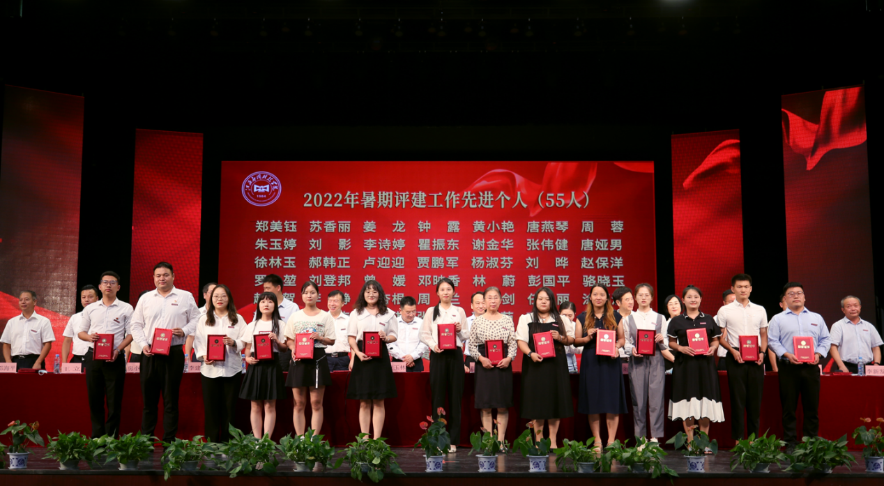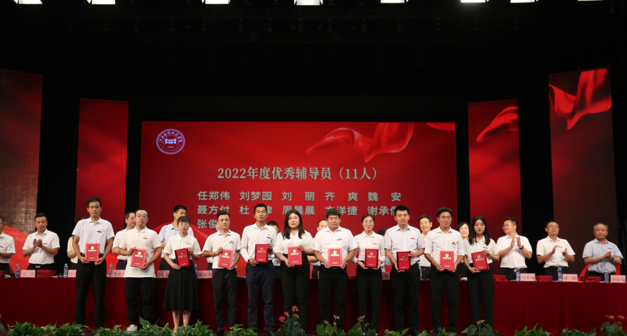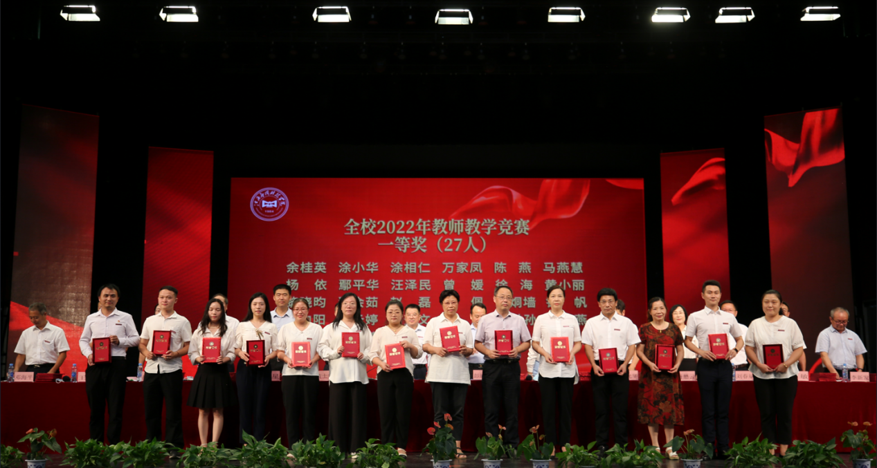 大会表彰了一批为学校事业发展作出贡献的优秀教师和管理干部。学校领导为在应科院从教16年的优秀教师代表,以及荣获2022年度“师德标兵”“学校思想政治工作典型案例获奖教师”“教师教学竞赛获奖教师”“第五届全省本科院校青年教师教学竞赛”“2022年度优秀辅导员”“2022年度优秀共青团干(教师)”“2022年暑期评建工作先进个人”颁奖,为受聘南昌航空大学硕士研究生导师和南昌大学硕士研究生导师的教师颁发聘书。学生上台为在应科院从教16年的优秀教师代表献花。