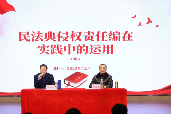 万里鹏和陈洪波两位教授以“民法典侵权责任编在实践中的运用”为题,从现实生活中的真实案例切入,通过结合机动车交通事故的定性、机动车的赔偿责任、高空抛物等案例,以小见大,深入浅出的剖析了民法典在实际案例中的运用,让同学们对法律知识有了进一步理解,加强了法律意识。