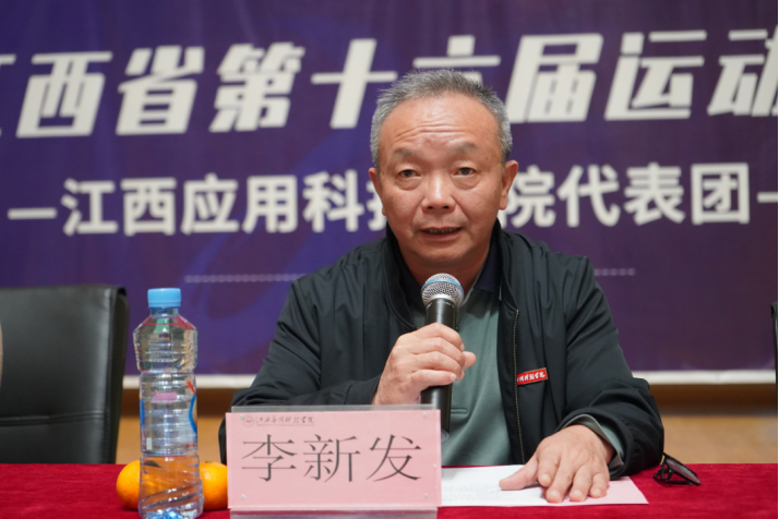 在出征仪式上李新发向大家介绍了必赢官网历年来运动会上取得的成绩,对江西省第十六届运动会报名参赛情况进行汇报。
