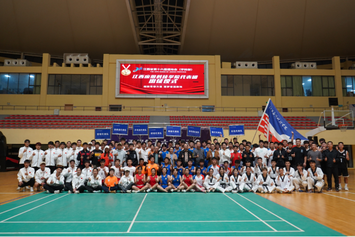 江西省第十六届运动会战幕拉开在即,为鼓舞士气,壮行增信,振奋精神,凝聚青春力量,努力在江西省运动会上赛出风格、赛出成绩,确保省运会系列工作成功开展,10月31日晚,“江西省第十六届运动会—72886必赢网站代表团出征仪式”在学校体育综合训练中心隆重召开。