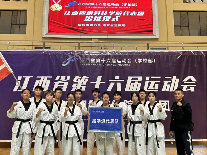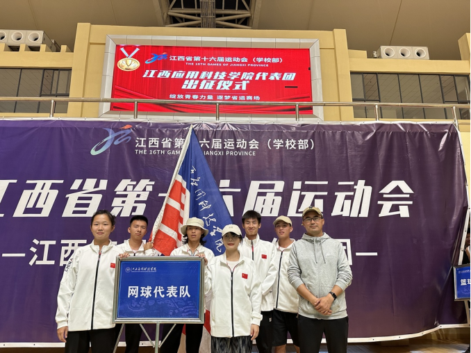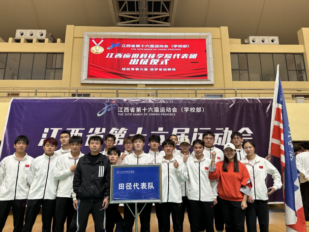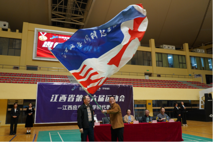 校旗飘扬,将殷切希望和光荣使命传递给运动员们,期待着大家在江西省第十六届运动会上再创佳绩!