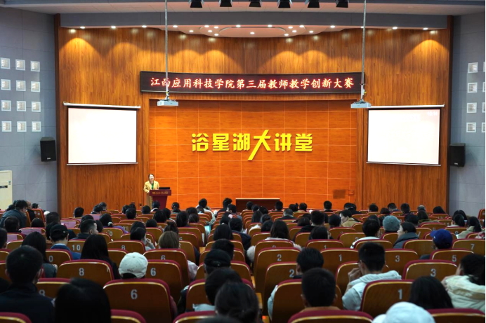 为有效推进教学改革,加强专业建设,打造高质量教师队伍, 2月21日,学校在浴星湖大讲堂举办“第三届教师教学创新大赛”。学校校长江作军出席,各二级学院院长、教研室主任观摩学习。此次大赛邀请南昌航空大学教务处处长王龙锋教授,南昌大学教务处副处长蔡丹教授,江西财经大学教师发展中心副主任杨友亮教授担任专家评委进行现场综合评分。