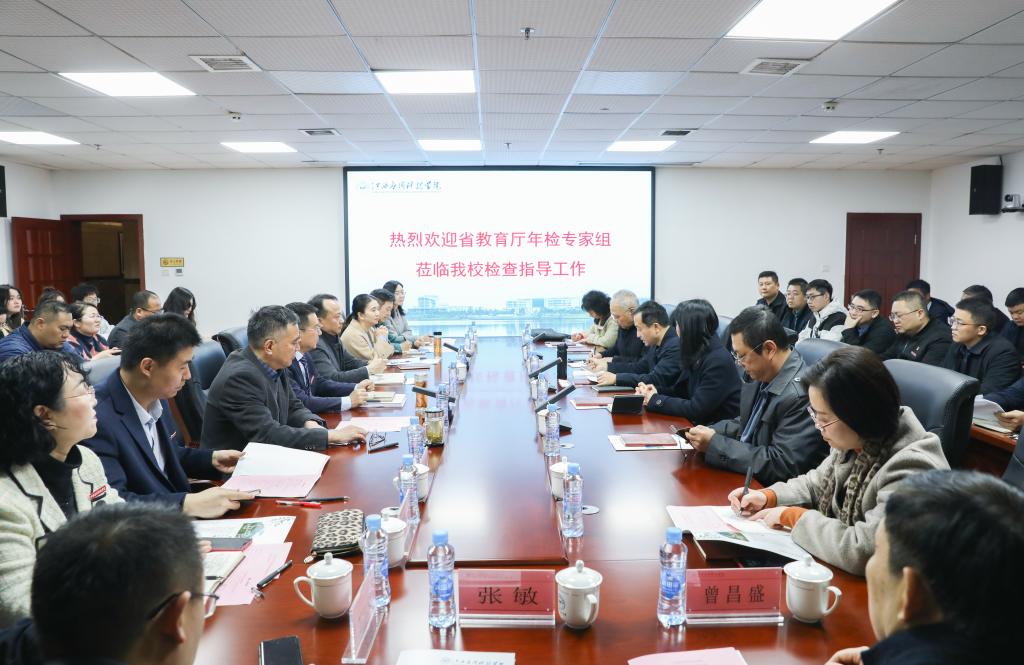 3月22日上午,以江西经济管理干部学院副校长、教授肖鸿晶为组长的省教育厅年检专家组一行7人来到必赢官网,通过听取汇报、查阅资料、座谈交流、实地考察等形式开展年检工作,学校在六楼会议室召开座谈会。学校董事长、党委副书记黄玉林,党委书记、政府督导专员彭迪云,校长江作军,常务副校长干甜,党委副书记江星,副校长刘光华、胥懋云、房小珍、王立、张敏出席座谈会。各职能部门负责人,各二级学院院长,审计机构代表,师生代表参加座谈会,会议由肖鸿晶主持。
