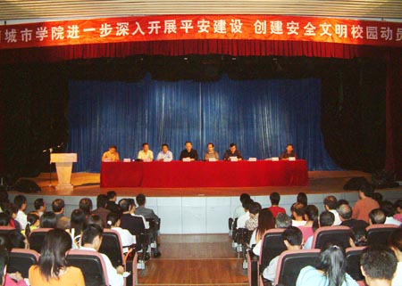 为认真贯彻《中共江西省委教育工委、江西省教育厅关于深入开展平安建设,创建安全文明校园的意见》的精神,给同学们提供一个安全文明的学习环境,我院于10月17日晚7点在图书馆十二楼大礼堂隆重召开以“深入开展平安建设,创建安全文明校园”为主题的全院师生动员大会。