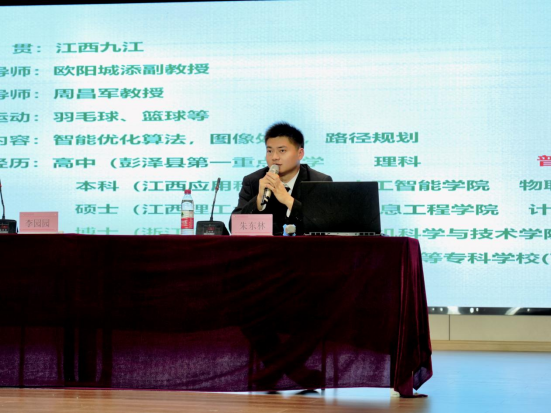 分享会上,校友朱东林首先向同学们介绍了自己的兴趣爱好和专业研究方向,并借此引出此次分享会的三个主题:一是本科经历,二是硕士经历,三是经验分享。