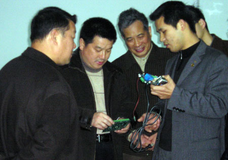 上午9点,黄玉林院长在计算机科学技术学院王继承书记的陪同下,兴致勃勃地参观了网络应用实验室,黄院长亲切询问了正在进行上机操作的同学对新设备的适应情况。黄院长一行还在计算机科学技术学院衷仁保院长的陪同下参观了硬件实验室。衷仁保院长一边讲解一边拿出一些硬件设备向黄院长展示并介绍说:“现在我们已依靠自己的力量,开发出了多种硬件,我们学生的动手能力很强。”听了衷院长的介绍,黄院长说:“学校花了很多资金投资硬件建设,就是希望给广大学生提供动手操作的平台,让广大学生将所学的知识尽最大的可能联系到实践中,为就业奠定坚实的基础。”当听完衷仁保院长关于科学安排实习基地作息时间,提高设备利用率的建议后,黄院长说:“我们一定要鼓励学生大胆动手,按照程序操作;要根据实际情况科学安排时间,充分利用资源。”