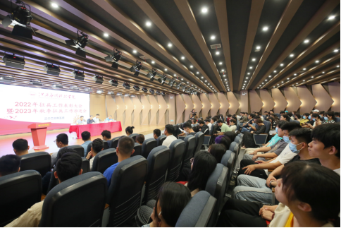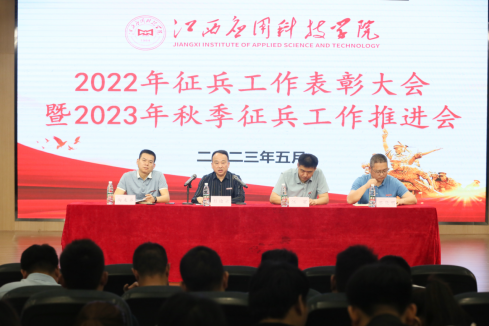 为总结2022年征兵工作情况,全面部署2023年征兵工作,5月17日上午,学校在辰林音乐厅举行2022年征兵工作表彰大会暨2023年秋季征兵工作推进会。学校党委书记彭迪云,党委副书记江星出席会议,学工处处长黎晓明,相关职能部门负责人及各学院党总支书记、学工科长、毕业班辅导员、毕业生代表参加会议。会议由保卫处处长陶友弟主持。