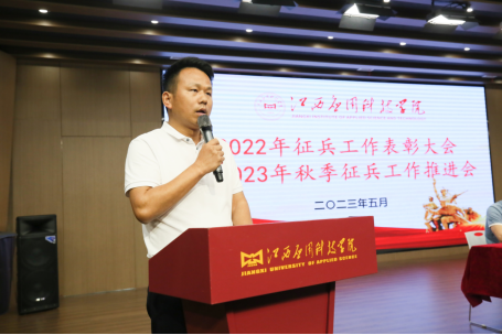 软件与区块链学院党总支书记卢胜勇在会上发言。他表示,软件与区块链学院将以此次大会为契机,进一步提高政治站位、统一思想,切实增强征兵工作的责任感和使命感,充分认识新时代做好征兵工作的重要性,不断提升学生依法履行兵役义务的观念,进一步增强爱国情怀。