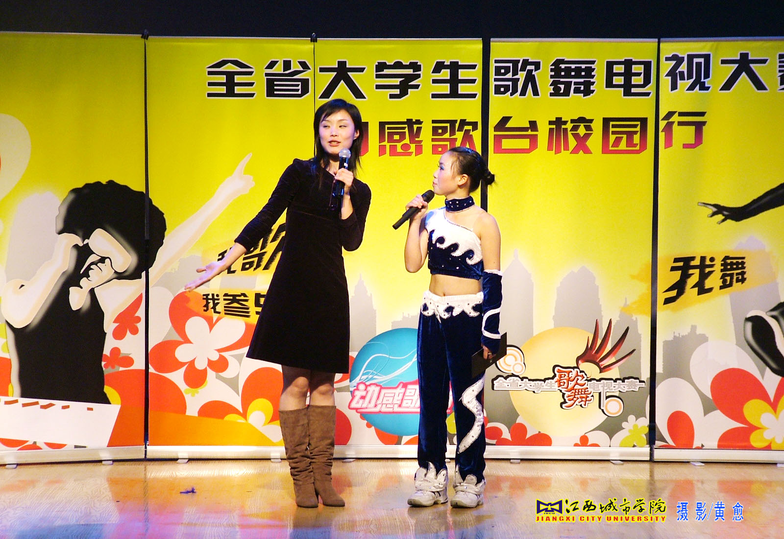 (记者李松报道)12月21晚,江西省教育电视台大型娱乐节目“全省大学生歌舞电视大赛动感歌台校园行—走进城院”在我院图书馆十二楼开拍。栏目组派出8名工作人员参与节目录制。在观看完动感歌台周末版《玄石组合的快乐体验》后,主持人小薇,小廖与现场观众进行了互动。台上的一举一动扣人心弦,现场观众积极参与,不停地欢呼。主持人小廖深情朗诵的诗作《我是中国人》将节目推向高潮,整场活动气氛热烈,在观众与主持人热情共舞中取得圆满成功。